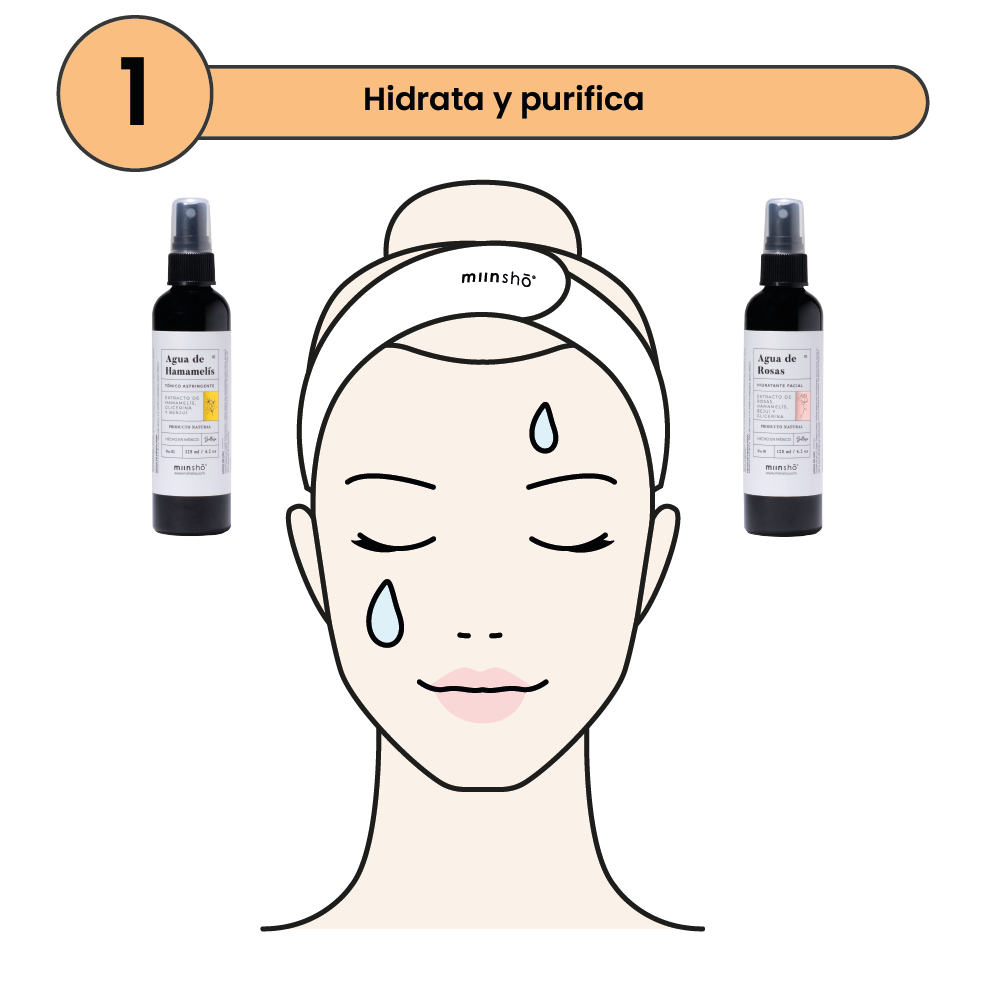 Rocíe directo al rostro para hidratar, en una piel limpia. Aplica a cualquier hora del día, si sientes sequedad en tu piel.