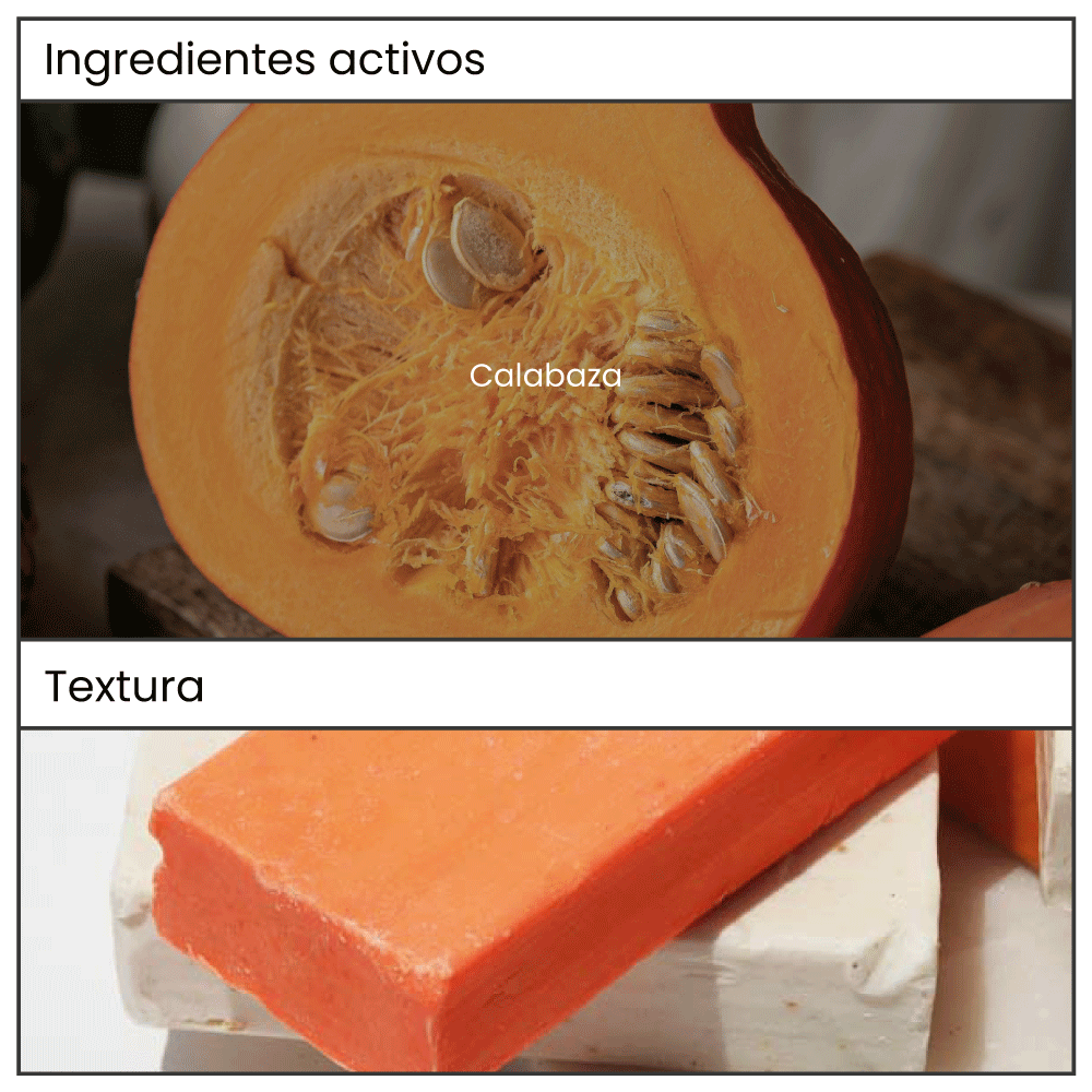 La calabaza es un ingrediente naturalmente rico en vitaminas, antioxidantes y enzimas que ayudan a revitalizar la piel. Tradicionalmente utilizada para mejorar la textura y luminosidad, aporta nutrientes esenciales que favorecen una piel más suave, fresca y equilibrada.